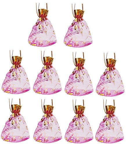 Consumer Reviews Purpledip Polyester Net Brocade Gift Pouch, Red, 4 Inches: Pack of 10 Potli Gift Bags (12079)